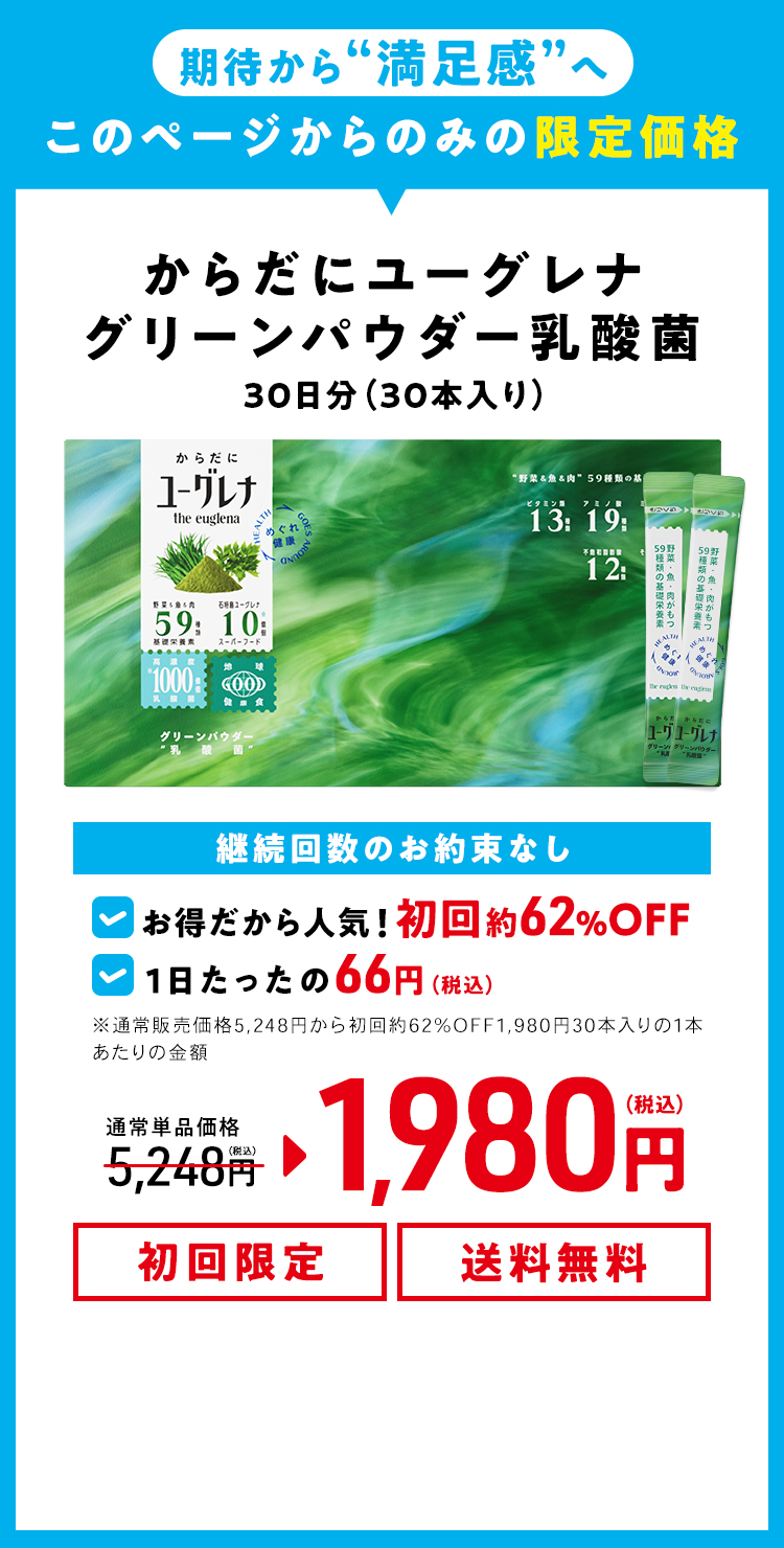 管理栄養士による処方設計体 からだにユーグレナGreen Powder 乳酸菌